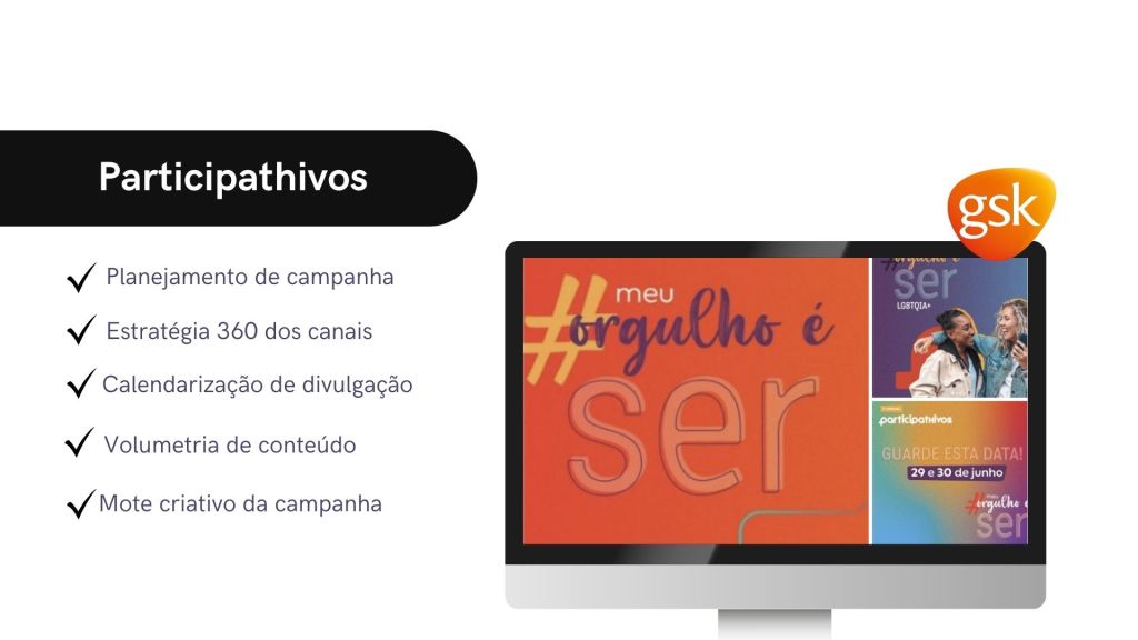 Na coordenação do projeto Participathivos, fui responsável pelo planejamento da campanha “Meu Orgulho é Ser”, evento realizado no mês do orgulho com o objetivo de ampliar o diálogo com o público sobre saúde e hiv.